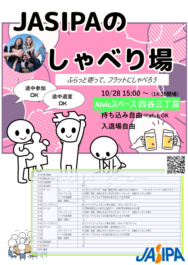 2025年10月28日(火)15時より、【JASIPAのしゃべり場】を開催します!!